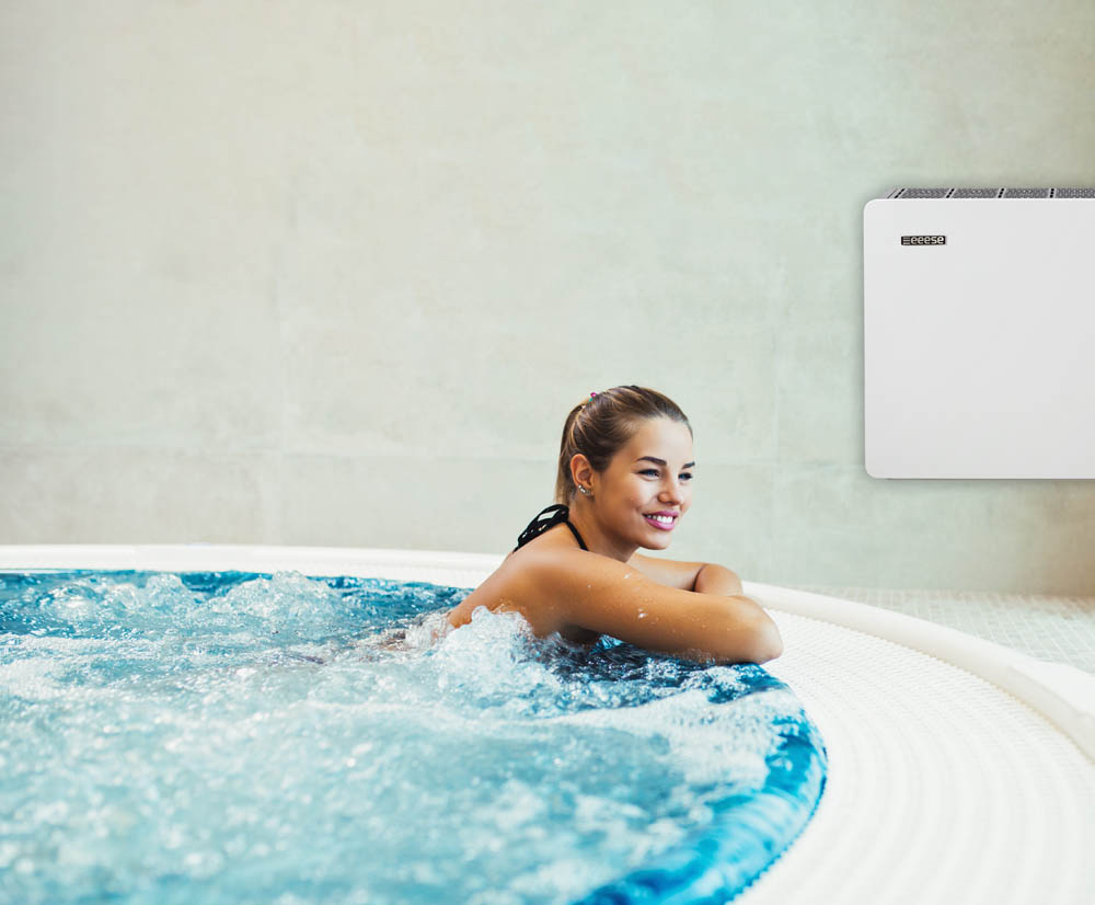 DESUMIDIFICADOR DE PISCINA FULL-INVERTER O primeiro desumidificador de piscina Full Inverter do mundo. Por trás do design elegante do desumidificador de piscina Eeese Axel Pool 60L, está um desumidificador potente, silencioso e energeticamente eficiente. O desumidificador de piscina Eeese Axel Pool 60L também pode ser usado em vestiários, centros de Wellness, caves e em todas as outras áreas até 120 m². Como o primeiro desumidificador de piscina Full-Inverter no mercado, o Eeese Axel Pool 60L utiliza a tecnologia Full Inverter. O compressor e o ventilador possuem uma regulação de frequência 100% automática e o desumidificador ajusta-se automaticamente à humidade relativa da sala.